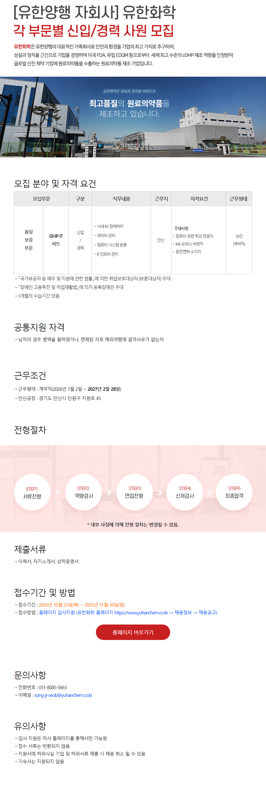 [ ¢ßÀ¯ÇÑÈ­ÇÐ ] GMP-ITÆÄÆ®(À°¾ÆÈÞÁ÷ÀÚ ´ëü °è¾àÁ÷) »ç¿ø ¸ðÁý(2025³â 11¿ù)