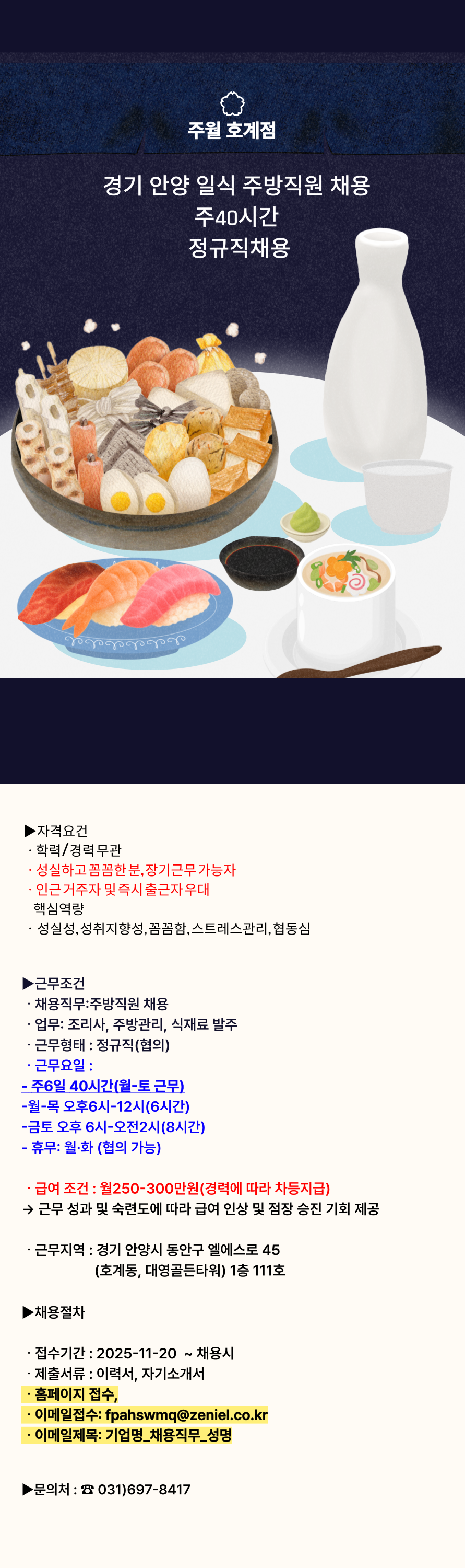 [ÁÖ¿ù È£°è] ÀÏ½Ä ÁÖ¹æ Á¶¸®»ç ÁÖ40½Ã°£ Á¤±ÔÁ÷ä¿ë(ÈÞÁ÷´ëü)
