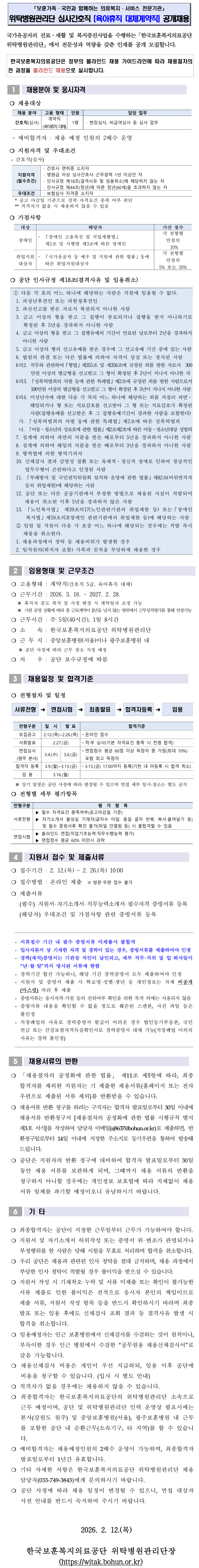 ÇÕ°Ý ÈÄ Ã¤¿ë½Ã, Çѱ¹º¸Èƺ¹ÁöÀÇ·á°ø´Ü À§Å¹º´¿ø°ü¸®´Ü ¼Ò¼Ó °è¾àÁ÷À¸·Î ±Ù¹«ÇÏ°Ô µË´Ï´Ù.
